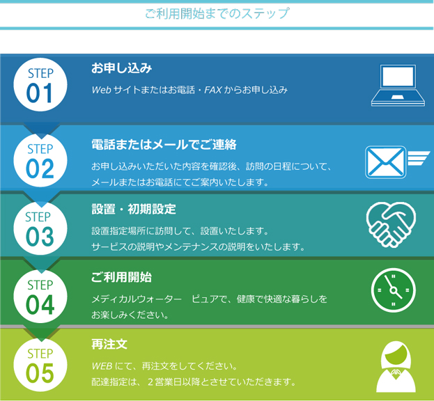 「安心・安全・そして美味しいメディカルウォーターピュア」を皆様に供給できますように、常に品質にこだわり今後も取り組んでいく所存でございます。